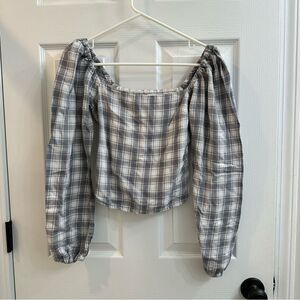 Abercrombie & Fitch plaid square neck puffy sleeve shirred back blouse