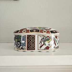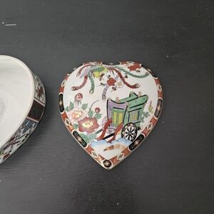 Vintage Japanese Imari Style Heart Shaped Trinket Box