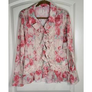 Free People Ivory Combo Floral Ruffle Lace Blouse – Size M (NWT)