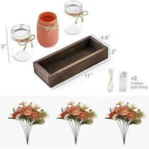Included Components: 1 * Wood Box, 3 * Jars, 3 * Fake Flowers, 3m Light String