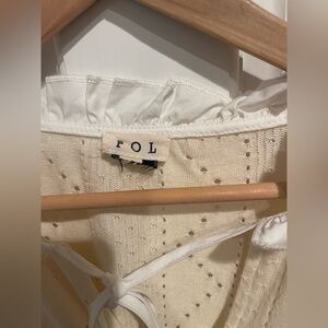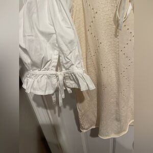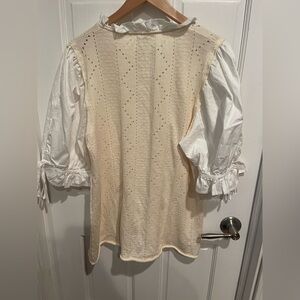Chic cream eyelet top with tie detail. Perfect for a stylish look. The size tag is gone but it looks like a L/XL. Put to put is appx 21” and length is appx 28.5”