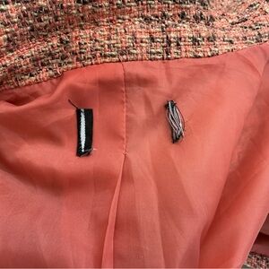 Elevate your style with this chic orange tweed blazer. Perfect for any occasion, this jacket offers a sophisticated look with its classic design and vibrant color.