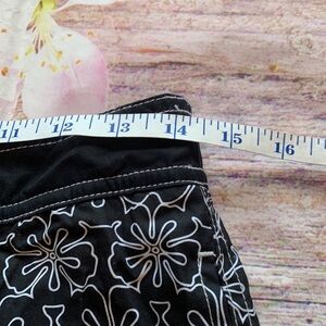 Pre-loved in excellent condition and like NEW! Nike black and white, floral waterproof active capris with side vents at hem, zip up with velcro closure at waist and 2 side pockets. Size S (4-6). Measurements and fabric info in pictures.