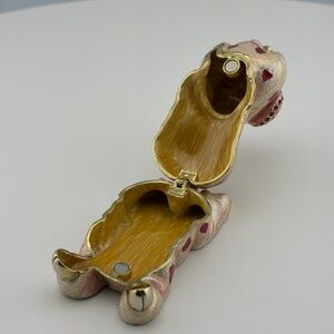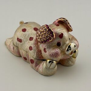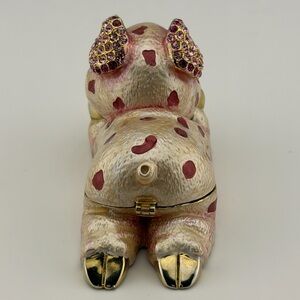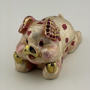 Vintage Gold Pink Enamel Rhinestone Pig Trinket Box