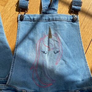 Cat & Jack girl’s Unicorn embroidered light wash overalls size 14-16 in great condition. Worn twice.