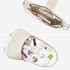 Features: Crafted from high-quality vegan leather, this Y2K-inspired crescent hobo is both stylish and functional. The zip-top keeps your essentials secure, while the metal accent adds a pop of style. The adjustable shoulder strap makes it easy to customize the fit for any look or occasion. Spacious enough for your phone, keys, wallet, and lip gloss in a sleek, versatile silhouette.