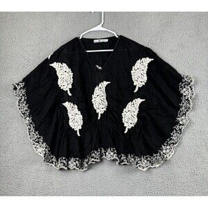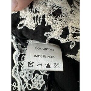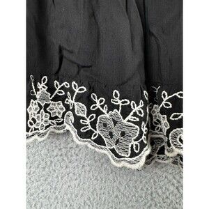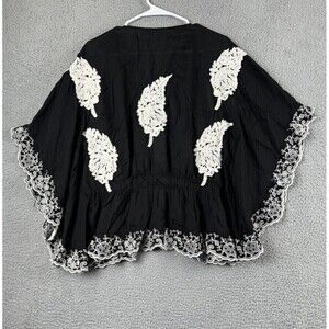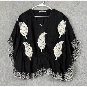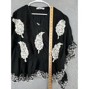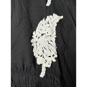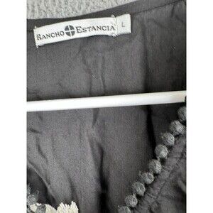 Rancho Estancia Womens Shirt L Black Embroidered Feathers Blouse Top Tunic
