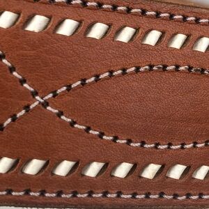 Enhance your wardrobe with this men's brown leather belt, featuring an intricately designed silver buckle with turquoise details. A perfect accessory for a refined look.