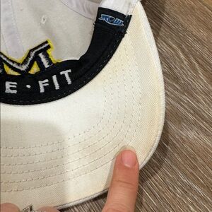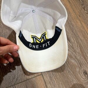White hat, navy blue and maize M