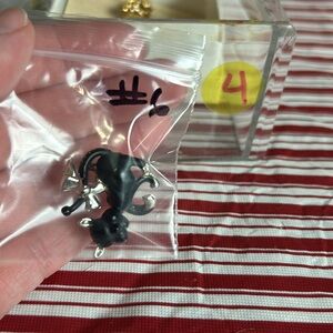 This charming vintage cat brooch features a sleek black and silver design, making it a sophisticated accessory for collectors or cat lovers.