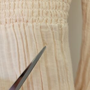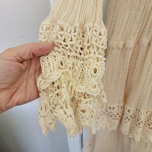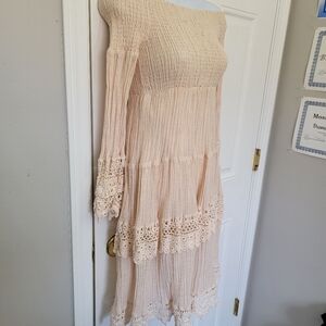 GUESS Gauzy Crinkly Crochet Lace Smocked Off The Shoulder Tiered Dress Small