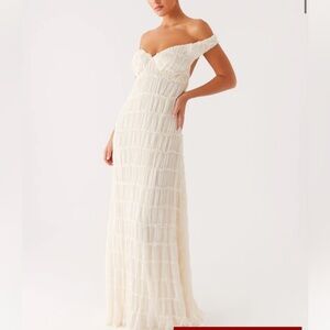 This elegant cream handbag features stunning pearl embellishments and a chic design, perfect for any occasion.