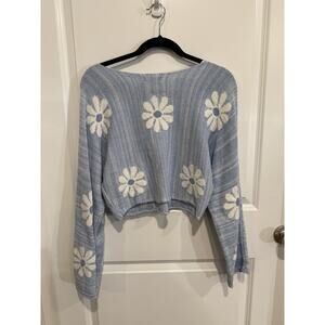 Altar’D State Light Blue Daisy Cropped Long Sleeve Sweater Women's Size Medium