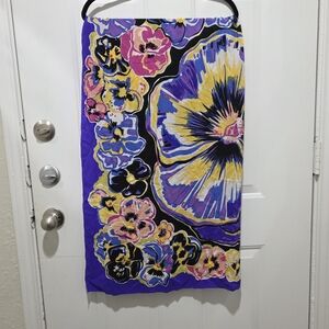 Bob Mackie Wearable Art 100% Silk Wrap Scarf Pansies Purple Multi Vintage excellent condition. perfect for gifting. Apx 38" x 38"