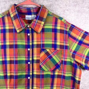 Carolina Colours Women’s 22W 3X Plaid Button Up Shirt Multi-Color Short Sleeve
