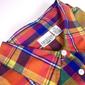 Carolina Colours Women’s 22W 3X Plaid Button Up Shirt Multi-Color Short Sleeve Size: Women’s 22W ( 3X) Color: Multi-Color bright colors Pre-owned great condition, with no visible stains, marks, or holes. Please see photos for measurements & best fit.