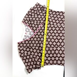 White Cross Gingerbread Print Brown & Pink Scrub Top L