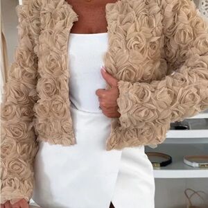 Perfect for workouts. Zipper front and only worn 1 time not the right style for me. Great navy blue. Very stylish criss cross back.