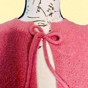 Elegant pink cardigan with bow accents. Soft and stylish.