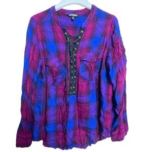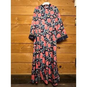 modcloth x Colectif Women’s sweater Med Deep V Neck scoop back Red Blue Floral