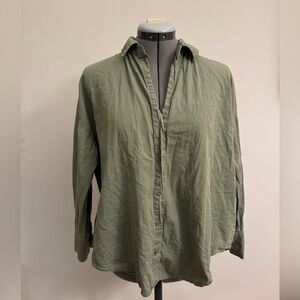 Robbie Bee Vintage 100% Silk Green Shirt with Leopard accents