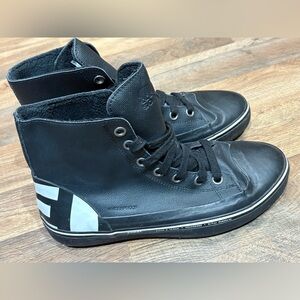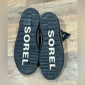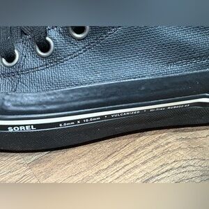 Sorel high-top sneakers in black with white accents. Stylish and comfortable for everyday wear.