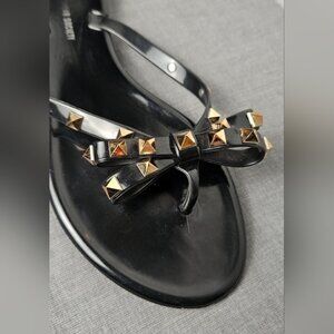 Streetwear Society Black Jelly Flip Flops with Brass Studs on the Bows.