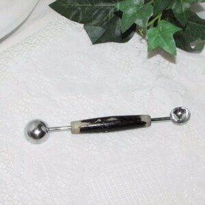 Vintage Garnishing Tool Melon Baller Kitchen Gadget Chippy Black Wood Handle