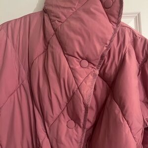 Free People XL NWOT Stylish rose pink quilted jacket. Perfect for layering. Side snaps at the bottom for more movement. Super warm and not overly bulky. Deep pockets and snaps up to the face for more warmth as needed.