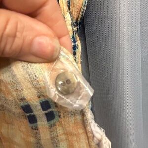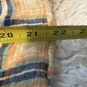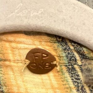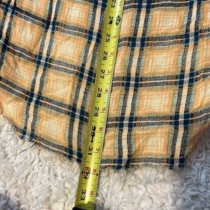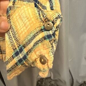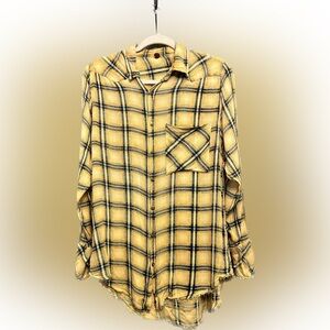 Free People Yellow Grunge Plaid Button Down Shirt Tunic raw hem👠