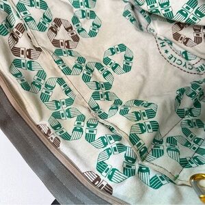 Notable details: zip top closure, woven logo straps, interior zip pocket, metal feet, durable structured construction