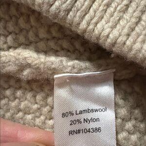 Stay cozy and stylish with this cream hooded knit coat. Perfect for layering, this sweater features a comfortable fit, hood, and cute front pockets. Ideal for chilly days. Wool blend.