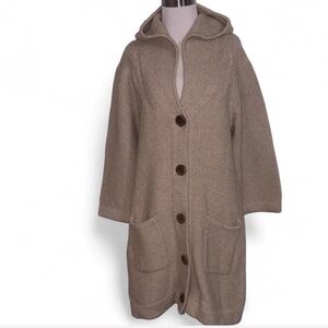 Garnet Hill Long Hoodie Duster Cardigan Wool Size Medium Cream