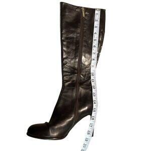 LK Bennett Dark Brown Leather Knee High Zip Up Elasticated Riding Boots EU37