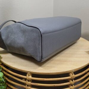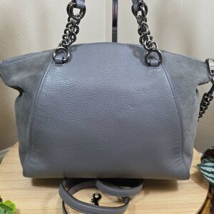 A refined and versatile satchel — this Coach Chain Prairie Satchel offers a sophisticated blend of grey leather with suede-side panels and gunmetal hardware. It’s in excellent pre-owned condition, with clean exterior and interior, ready for daily use or as a polished statement piece.