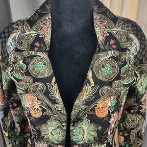 Mary Bays (Victoria Royal) Fully Lined Vintage Beaded Floral Print Silk Blazer, Size 4 High-end, luxurious & vintage Mary Bays (Victoria Royal) silk, fully lined, embellished & beaded rare evening blazer. Gorgeous ornate & shimmering leaf & floral pattern w/ beading & sequins throughout—pictures do not do this unique, collectible evening coat it’s due justice! Great Pre-Owned Condition (see pics for details) Features: • Style Profile: Fall, Winter, Autumn, summer, spring, casual, bbq, pool party, beach party, night out, office, business, evening, work, Gala, Soiree, Formal Affair, • Flaws: No Holes, stains, or tears • Please see photos for measurements (in inches). • We are happy to answer your questions! • Washing Instructions: Dry clean
