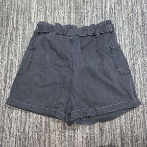 GB Gianni Bini Womens Size 11 Denim Shorts Black Tie Waste Patch Pockets NWT