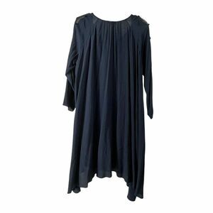 Madewell Brand Dress Solid Navy Blue Women's Size Small Long Button Peep Sleeve Tapered Shark Bite Hem V Neck With Buttons Career Casual Relaxed Fit
