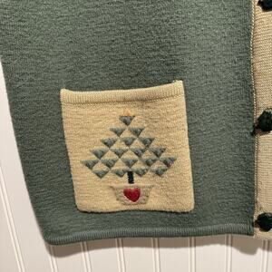 Woolrich Christmas Tree Wool Button Up Sweater Vest Sage Green Size XL