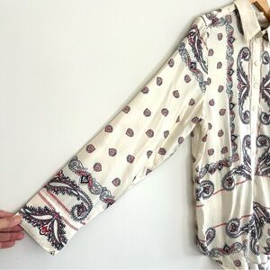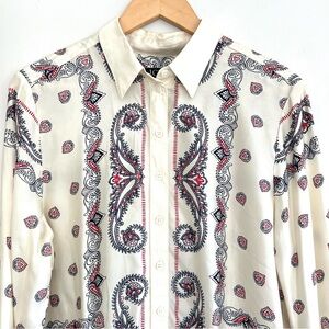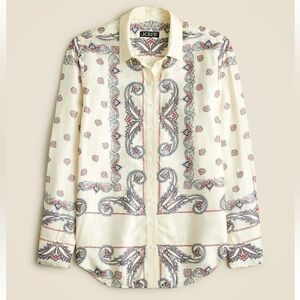 J. CREW Drapey Paisley Print Multicolor Long Sleeves Button Up Shirt Blouse Sz L