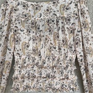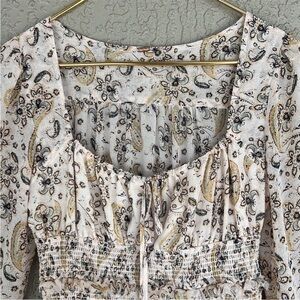 Free People Long Sleeve Tiered Smocked Bodice‎ Floral Paisley Print Lolita Top