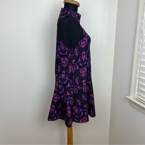 Gorgeous and in excellent used condition! Purple black with Ikat like design and high neck. Mini dress or tunic. Measurements are included in photos.