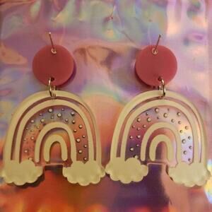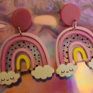 Handmade Plastic Pink Kawaii Rainbow Dangle Earrings