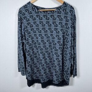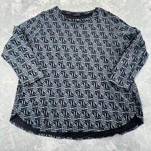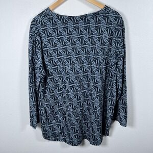 Fresh Produce Tunic Top Womens 1X Blue White Geometric Print Casual Cotton USA