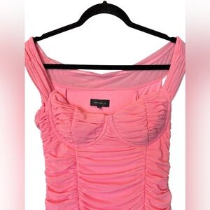 Revolve Majorelle Tabith Midi Dress in Bubblegum Pink Ruched Off the Shoulder Size M - Excellent Condition - Tulle - Shirred - Bodycon - Stretchy