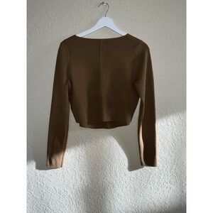 House of Harlow Large Brown Cropped Ribbed Knit Long Sleeve Top