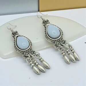 Turkish Zamak Dangle Earrings with Stabilized Turquoise Handmade Jewelry
