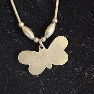 Vintage Mother of Pearl Silver Butterfly Pendant Necklace