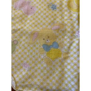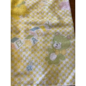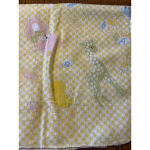 Vintage Baby Blanket Yellow Sweet Nursery Animals Giraffe Duck Bear 31" X 38"
