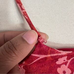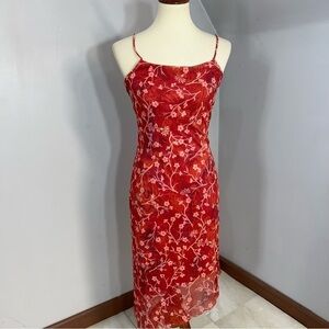 Vintage Y2K Spaghetti Strap Dress Beach Resort Asymmetric Red Ditsy Floral Midi